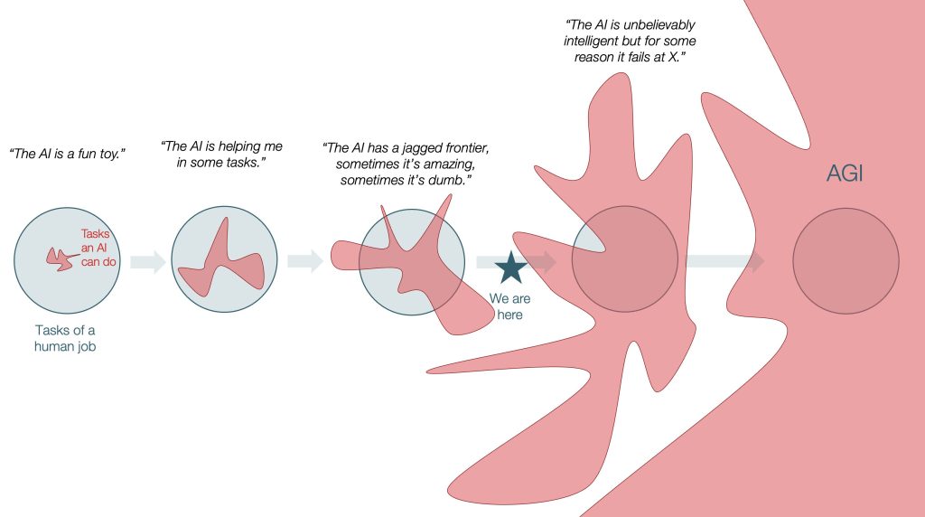 This jagged, spiky shape from Silicon Valley writer and analyst Tomas Pueyo nicely illustrates how AI intelligence has developed and the situation we find ourselves in today: models that excel at specific tasks while failing unexpectedly at other simple challenges. Gemini and Claude ace PhD-level reasoning tests, yet both still make mistakes a child would not.