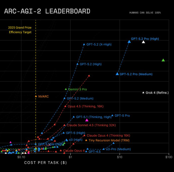 Yet others are genuinely impressed with what they are seeing. For deep research, for complex multi-step reasoning, for processing vast documents, the model delivers capabilities that were not available at any price a year ago. Shumer calls it “the best model in the world” for tasks no other model can touch. Enterprise evaluations in finance and life sciences show meaningful reasoning improvements over previous generations. And the ARC-AGI efficiency gains are remarkable: a year ago, a special preview of OpenAI’s o3 scored 88% on ARC-AGI-1 at $4,500 per task. GPT-5.2 Pro now hits 90.5% at just $11.64, representing a 390x efficiency improvement in twelve months.